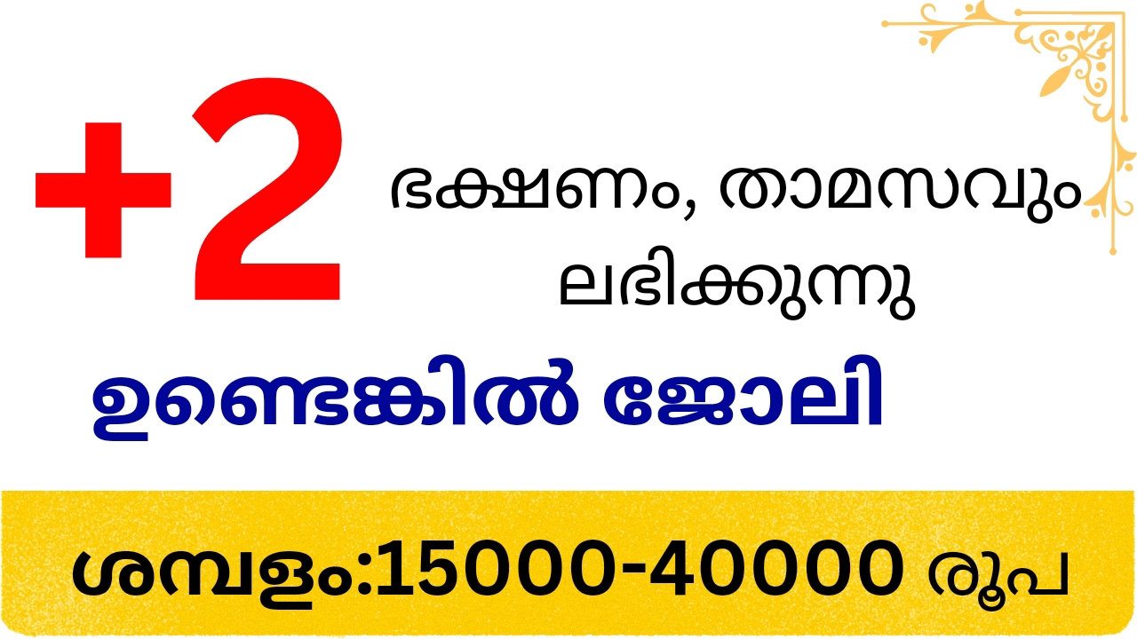 പ്ലസ് ടു യോഗ്യത ഉണ്ടോ ഭക്ഷണം, താമസവും ഉൾപ്പെടെ ഉയർന്ന ശമ്പളത്തിൽ ജോലി